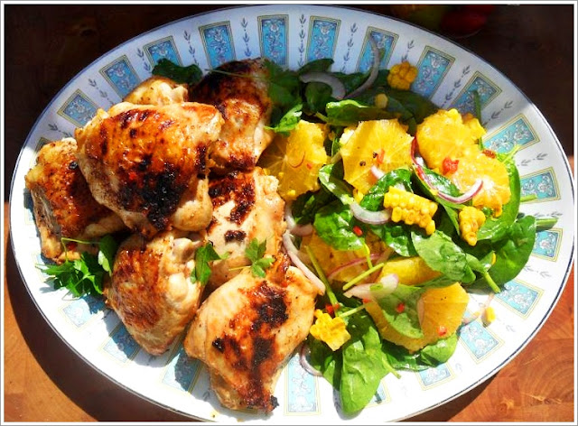 Gegrillte süße-Chili Schweinebauchscheiben mit Creamy Coleslaw – Krautsalat